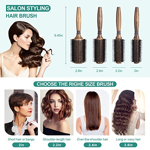 Okrągła szczotka do włosów dla kobiet lub mężczyzn, szybkoschnąca, duża okrągła szczotka do włosów z włosia dzika, do stylizacji włosów, suszenia, kręcenia (kolor retro) (wewnętrzna 23 mm/