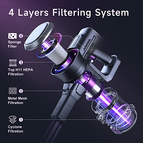 • Idealny dla właścicieli zwierząt: dzięki najwyższej 11 klasie HEPA i 4-stopniowej filtracji cyklonowej ten poręczny bezprzewodowy odkurzacz może usunąć 99,7% kurzu do 0,3 µm. Skuteczne usuwanie pyłków, łupieżu i zanieczyszczeń powietrza. Dzięki wymiennym częściom ten bezprzewodowy odkurzacz będzie bardzo łatwy do zbierania sierści zwierząt i kurzu domowego z tapicerki lub materaca.