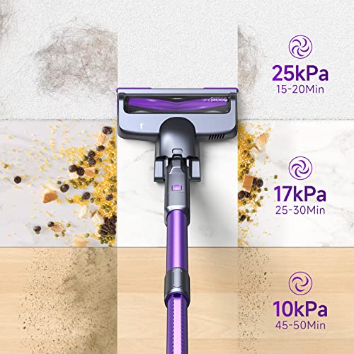 • 50 minut pracy z odłączanym akumulatorem: dzięki akumulatorowi litowo-jonowemu 7*2200 mAh i technologii szybkiego ładowania ten lekki odkurzacz sztyftowy można w pełni naładować w ciągu 4 godzin. Następnie bezprzewodowy odkurzacz oferuje 20min czasu pracy w trybie max przy 25kPa, 30min w trybie średnim przy 17kPa i 50min w trybie mini przy 10kPa. Wymienna konstrukcja baterii ułatwia ładowanie i wymianę baterii odkurzacza. Baterię zastępczą można znaleźć na naszej stronie głównej.