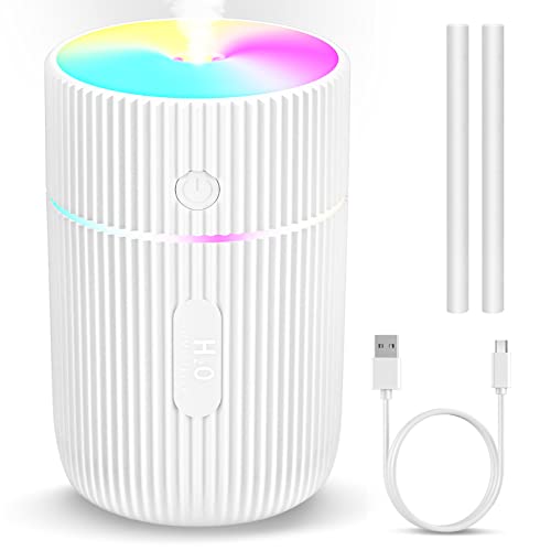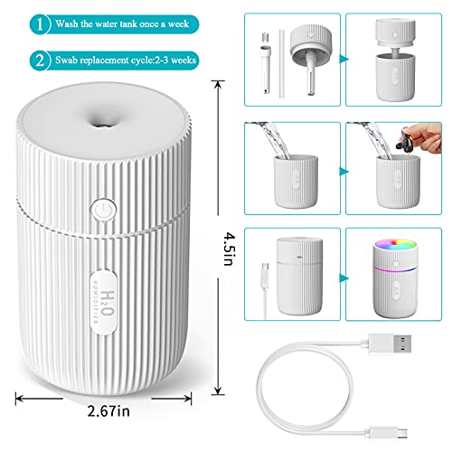 Kweey kolorowy nawilżacz powietrza mini USB ultradźwiękowy nawilżacz z 7 kolorami świateł oddechowych automatyczne wyłączanie 2 tryby mgiełki do samochodu biura sypialni (biały)