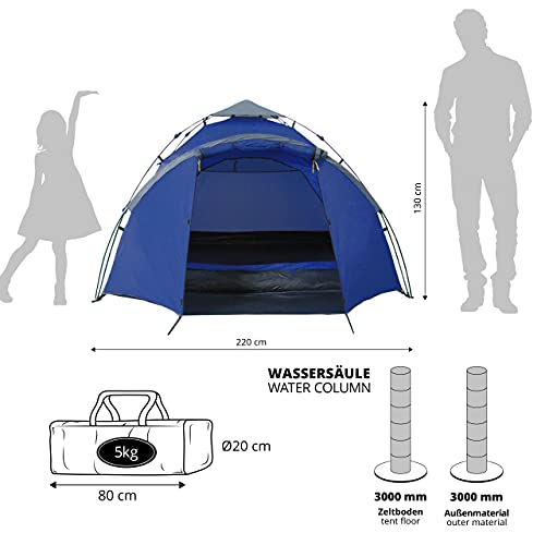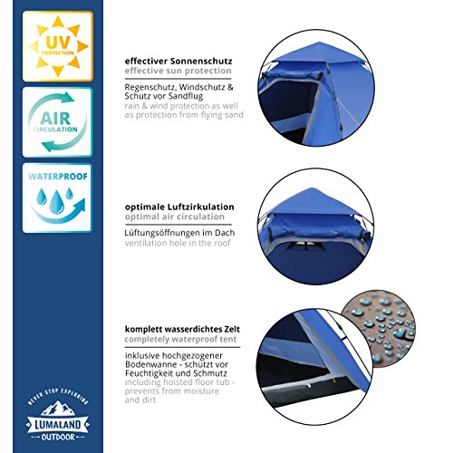 Lumaland Outdoor Pop Up namiot rodzinny, namiot rzucany, namiot dla 3 osób, na kemping, festiwal, 220 x 220 x 130 cm