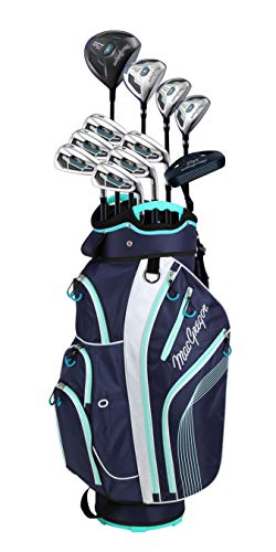 MACGREGOR Damski DCT2000 wysokiej jakości żelazo grafitowe drewno klub golfowy i torba na wózek zestaw zestaw do klubu, granatowy/biały, dla pań prawa ręka