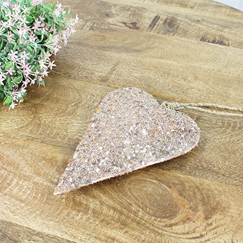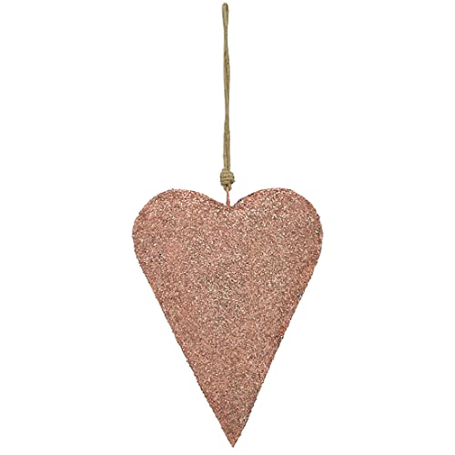 MACOSA EX23721 dekoracyjne serce brudny róż brokat 23 cm metalowa zawieszka dekoracyjna serce do zawieszenia dekoracja wisząca dekoracja serce zawieszka metalowe serce różowe
