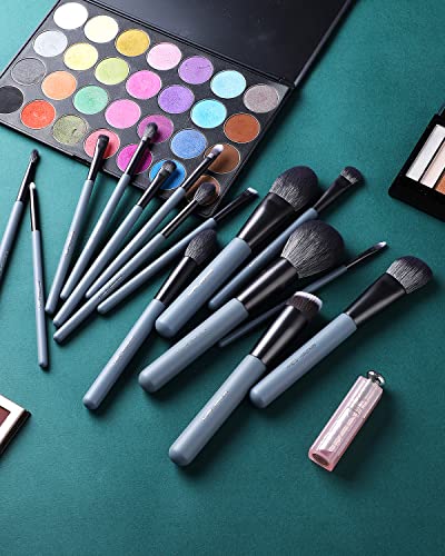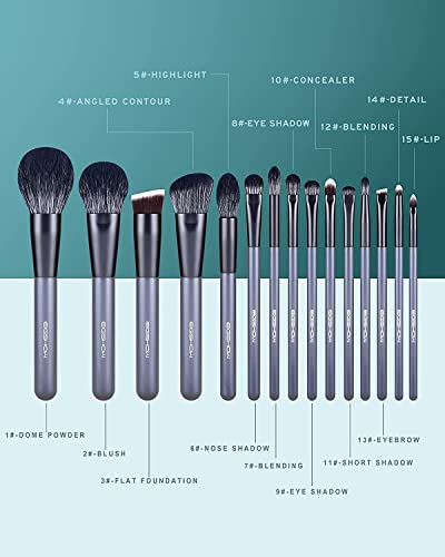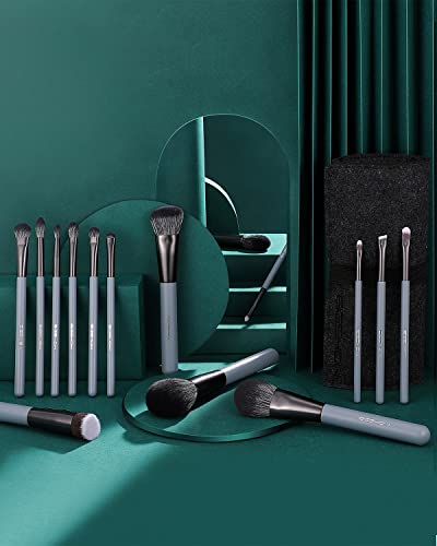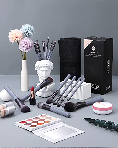 Pędzle do makijażu, 15 części podstawowych profesjonalnych pędzli kosmetycznych w zestawie, pędzle do makijażu, wegańskie, wysoka jakość, 7 szt. pędzelków do cieni do powiek + pędzel do pudru, różu, podkładu, rozświetlacza itd. (szary)