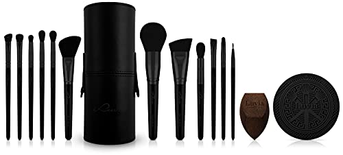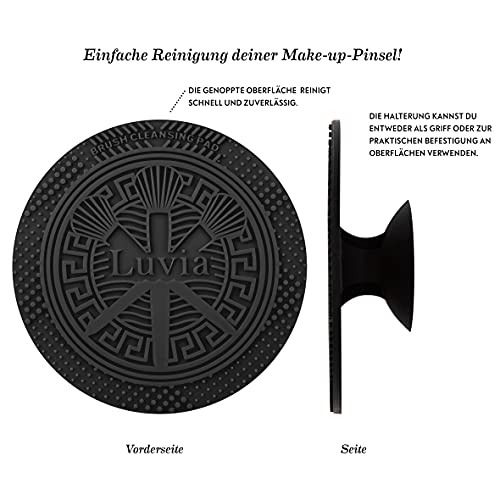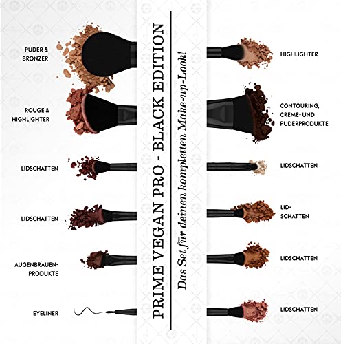 Zestaw pędzli do makijażu Luvia, Prime Vegan Pro – Black, 12 pędzli do makijażu, w tym pojemnik na pędzle, gąbka do blendowania i mata do czyszczenia pędzli kosmetycznych, w kolorze czarnym