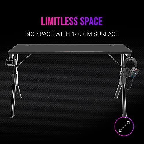 Mars Gaming MGD140 czarny, stół do gier 140 cm, zestaw słuchawkowy + stojak na napoje, całkowita podkładka pod mysz