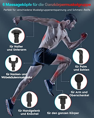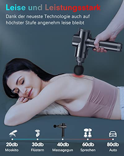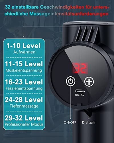 • Znajdź swój indywidualny nadruk masowy – dzięki 32 możliwym stopniom masażu możesz dostosować prędkość pistoletu do masażu do własnych potrzeb. Wykorzystaj je do rozgrzania mięśni, relaksu mięśni, rozluźnienia powięzi, głębokiego masażu i profesjonalnego sportu. Rozluźnij napięcie mięśni powodujące bóle ze względu na regularne niedociągnięcia postawy i przywróć jakość życia.
