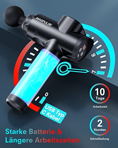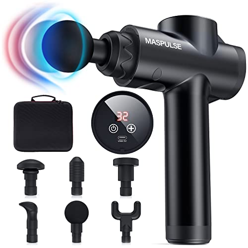MASPULSE mini pistolet do masażu, pistolet do masażu, 32 prędkości, 6 głowic do masażu, do masażu karku, ramion, pleców