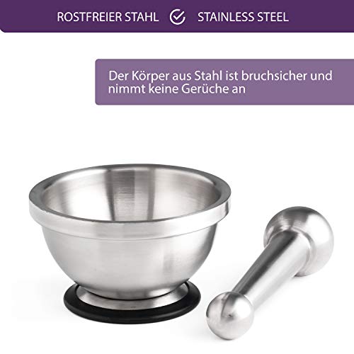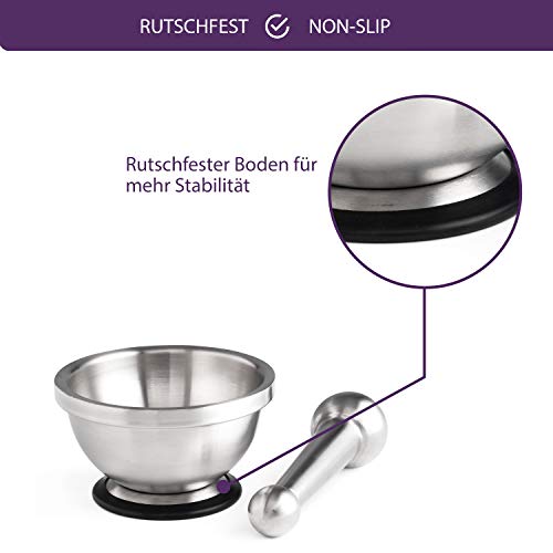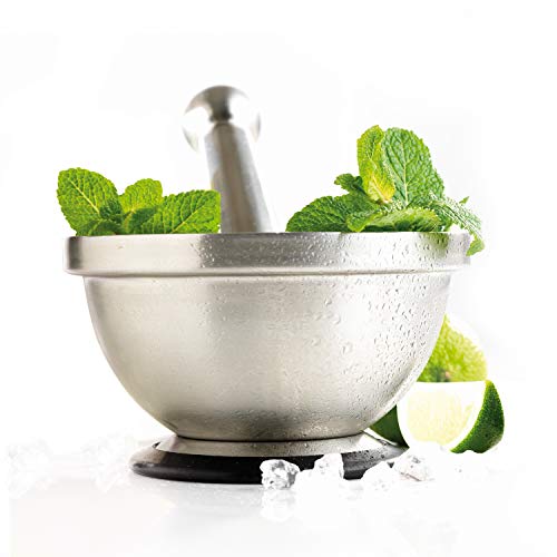 • ROBUST UND STABIL: Der Mörser ist besonders widerstandsfähig, so dass Sie Ihre Kräuter, Gewürze und Samen perfekt verarbeiten. Gleichzeitig wird die Temperatur von der doppelten Wand erhalten.