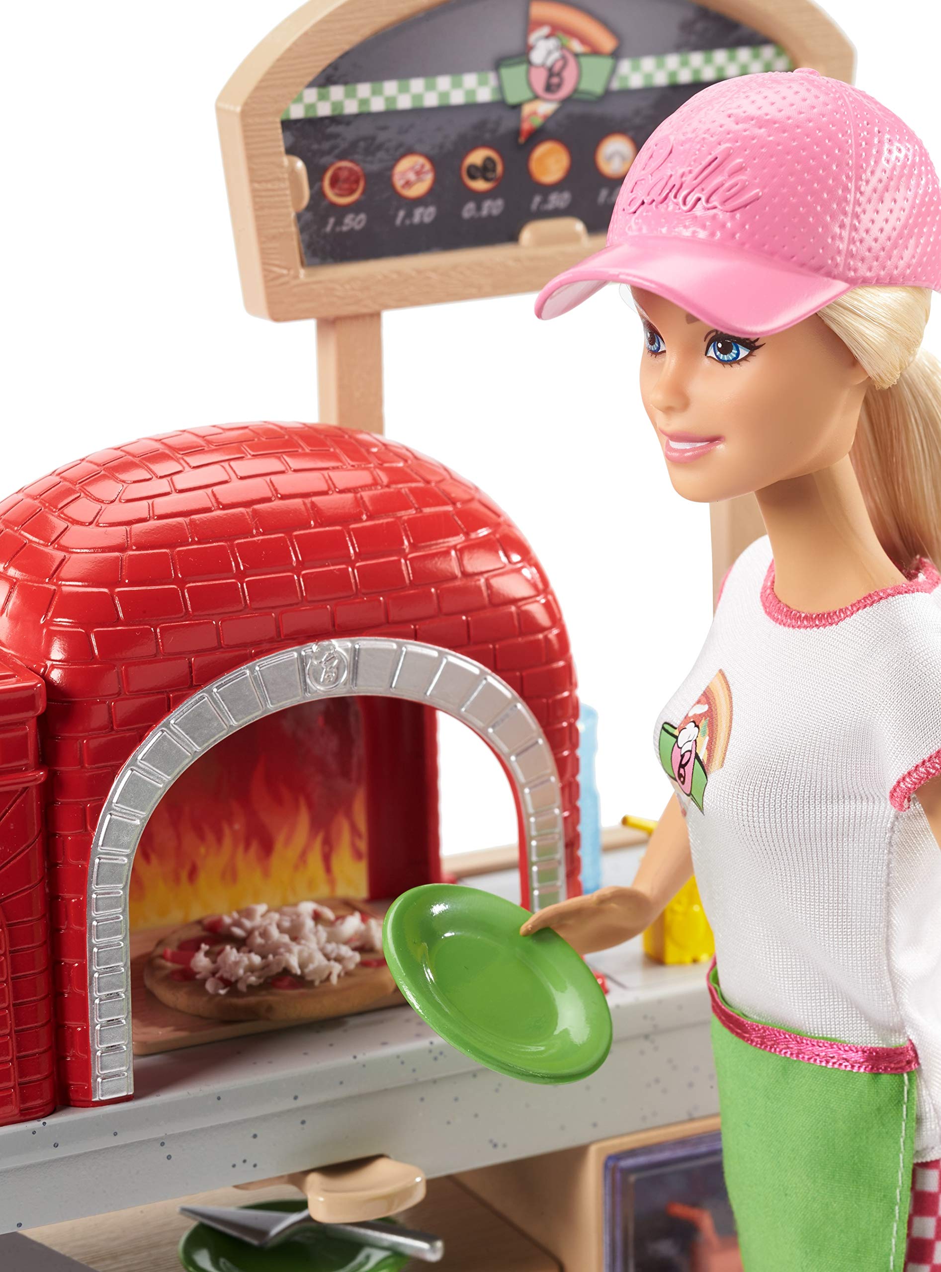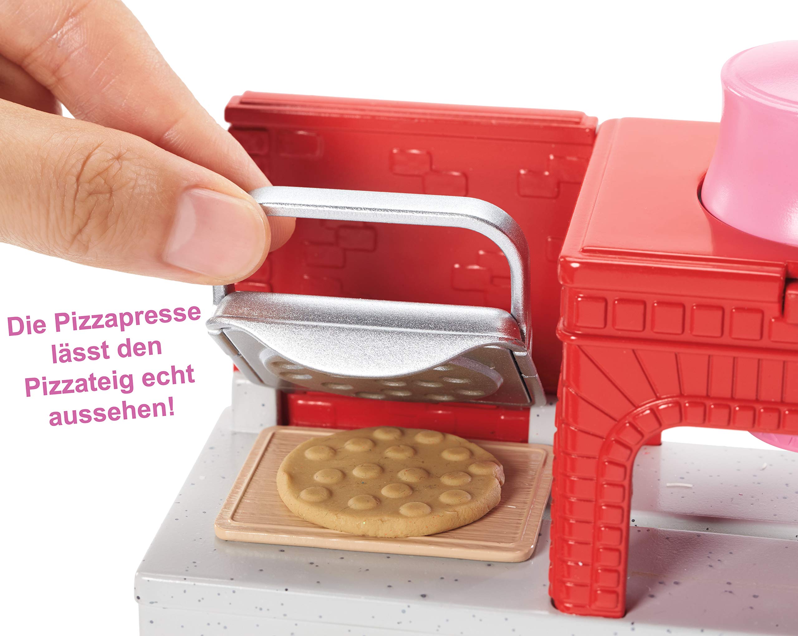 - Dieses Pizza-Spielset sorgt garantiert für Spielspaß und enthält eine Barbie-Puppe, einen Ofen mit kreativen, beweglichen Funktionen und alle Zutaten, um Pizza zuzubereiten, zu backen und zu servieren – mit drei verschiedenen Teigfarben