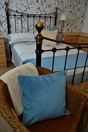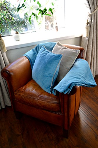 Poszewka na poduszkę z aksamit w kolorze kaczego błękitu, matowa, paspelowana, 43 cm x 43 cm. Z luksusowej kolekcji McAlister