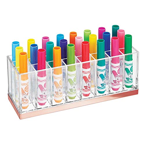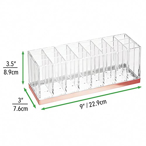 mDesign Organizer do makijażu, organizer na kosmetyki na toaletki i blaty, do przechowywania makijażu z 24 przegródkami na szminki, cienie do powiek i nie tylko, przezroczysty/różowe złoto