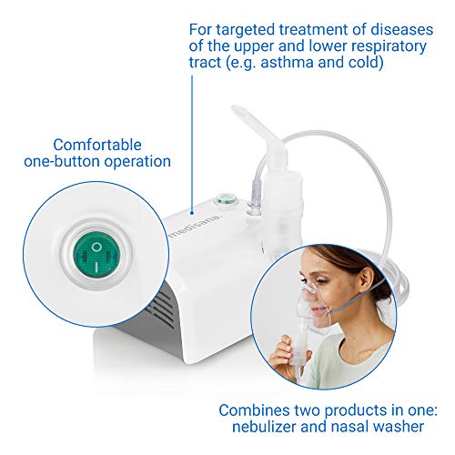 Medisana IN 520 inhalator nebulizator kompresorowy z ustnikiem i maseczką dla dorosłych i dzieci, na przeziębienie lub astmę z bogatym wyposażeniem
