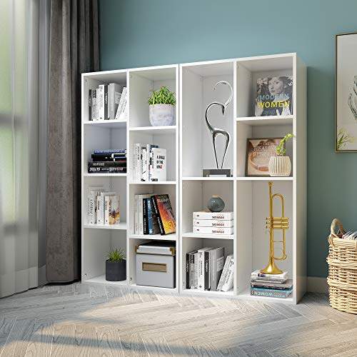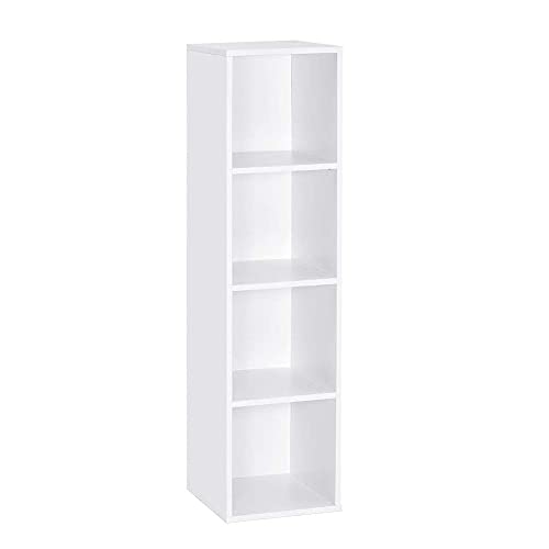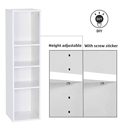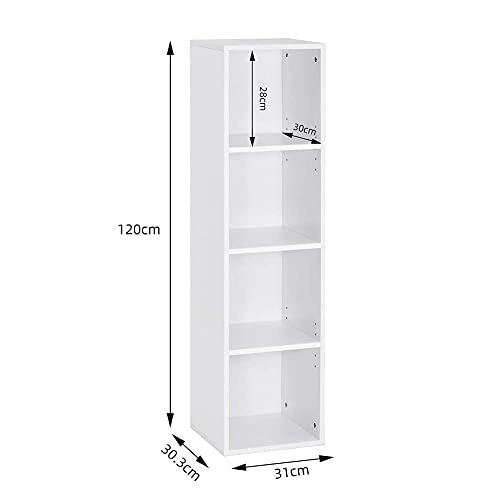 Mondeer Regał na książki z 4 kostkami, regulowany, nowoczesny, drewniany, wysoki, wąski, 30 x 30 x 120 cm, biały