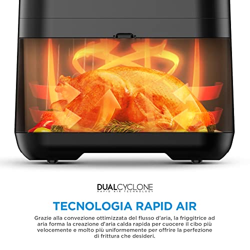 • _Bezpieczne i _atwe do czyszczenia_ Zdejmowany nieprzywieraj_cy kosz airfryer jest _atwy do czyszczenia zarówno r_cznie, jak i w zmywarce. Uchwyt kosza nigdy si_ nie przegrzewa i ma zabezpieczenie przyciskowe, aby unikn__ przypadkowych wypadków