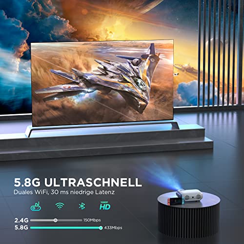 Projektor Bluetooth WiFi 5G + 2.4G, Native 720P LED, obsługuje 1080P Full HD, projektor wideo z głośnikiem DSP do kina domowego, kompatybilny z TV, HDMI, USB, PS4, smartfonami