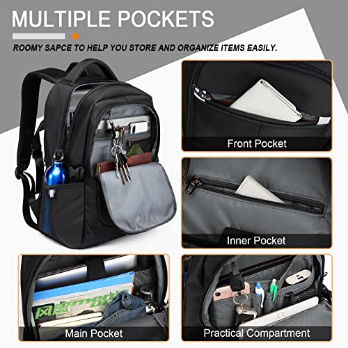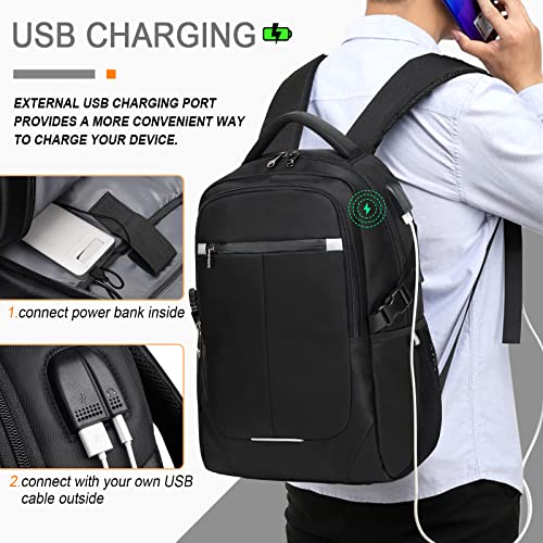 misognare biznesowy plecak na laptopa wodoodporny plecak szkolny z portem ładowania USB dla kobiet mężczyzn pasuje do laptopa i notebooka 15 6 cala (czarny)