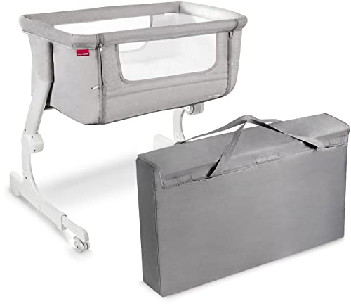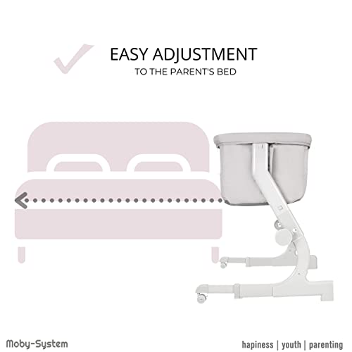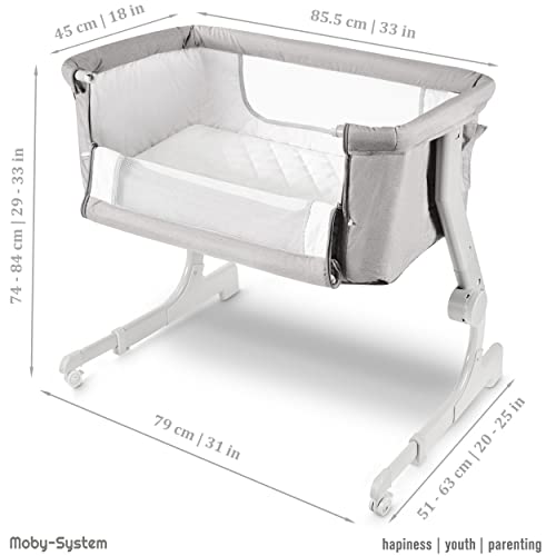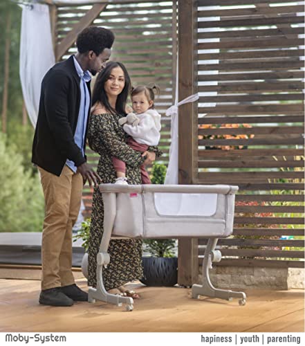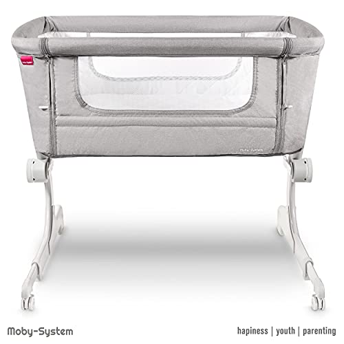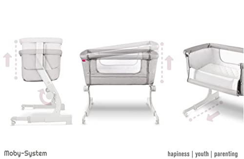 Moby-System Łóżeczko dla Dziecka 2w1 Dostawne do Łóżka lub Wolnostojące CLOSER 2, Łóżeczko Turystyczne dla Niemowląt, Dostawka do Łóżka Rodziców, Łóżeczko dla Malucha, Szare
