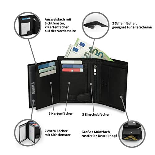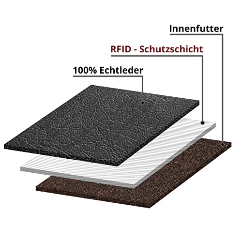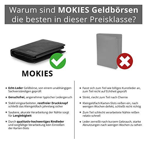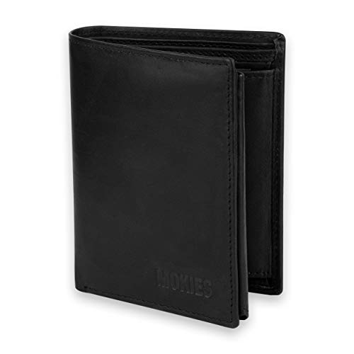MOKIES Męski portfel z prawdziwej skóry – 100% skóra bydlęca – RFID i NFC – pionowy portfel dla mężczyzn