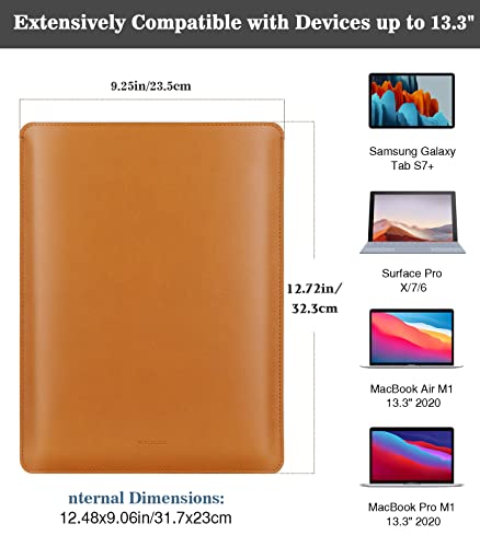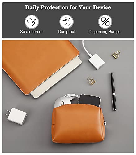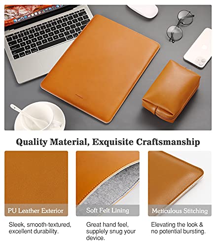 MoKo Laptop Sleeve Compatible with MacBook Air M1 13.3 2020 MacBook Pro M1 13.3 2020 PU Leather Notebook Computer Briefcase Protective Carrying Bag Slim Case Pouch with Small Bag Brown