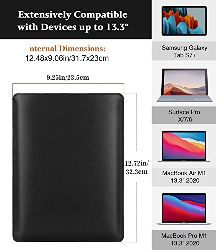 MoKo Laptop Sleeve Compatible with MacBook Air M1 13.3 2020, MacBook Pro M1 13.3 2020, Galaxy Tab S8+ 12.4″,PU Leather Notebook Computer Briefcase Carrying Bag Slim Stylish Case Pouch, Black