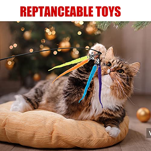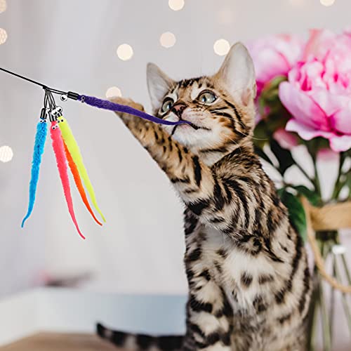 Molain Wymienny wkład do zabawki dla kota, 12 szt. robak z futrzanym ogonem z dzwonkiem, interaktywne zabawki do ścigania kotów, wkłady do różdżki dla
