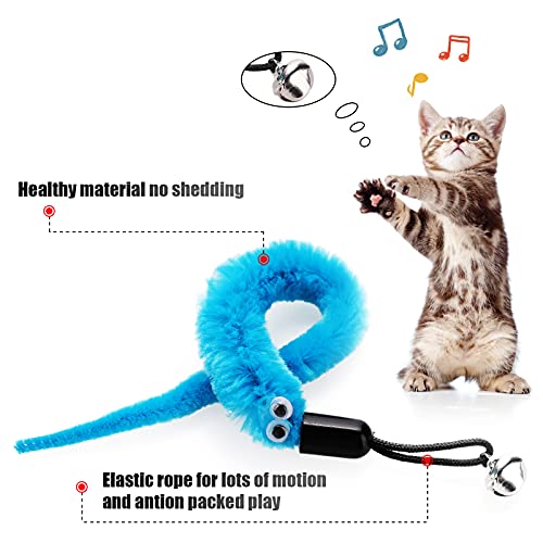 Wysoka jakość i: Wysoka jakość i bezpieczeństwo – wszystkie zabawki Squiggly Worm są wykonane z bezpiecznego materiału, który jest elastyczny w rotacji i ma dużą siłę rozciągającą i elastyczną, nie blaknie i nie gubi włosia, miękki, zapewnia niekończącą się zabawę z kotami. Jest bezpieczny dla kotów, ale nie oznacza