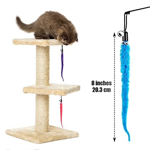 Molain Wymienny wkład do zabawki dla kota, 12 szt. robak z futrzanym ogonem z dzwonkiem, interaktywne zabawki do ścigania kotów, wkłady do różdżki dla kociąt