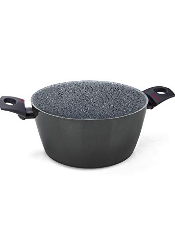 - Obermaterial aus Aluminium hohe Dicke, exklusiver Boden aus ferromagnetischem Stahl Net Induction für den Einsatz auf allen Herdarten einschließlich Induktion. Innenbeschichtung ARTECH STONE ULTRA super verstärkt. PFOA-, NICKEL- und BISFENOLO A-freies, seidenmattes HT silikonisiertes Obermaterial hitzebeständig und spülmaschinenfest. Griffe aus Bakelit mit Soft-Touch-Finish Spülmaschinenfest Hergestellt in Italien. 5 Jahre