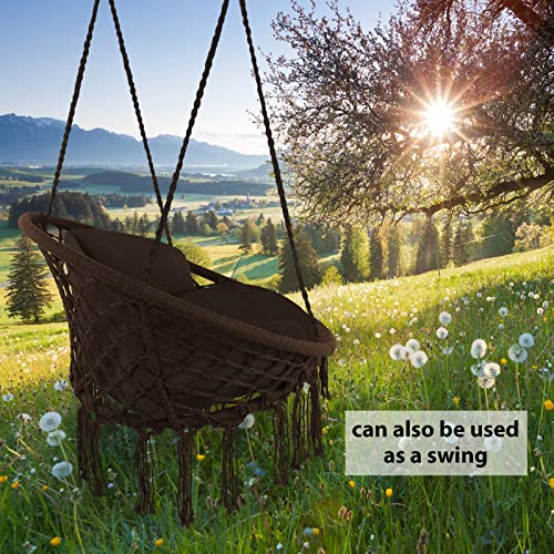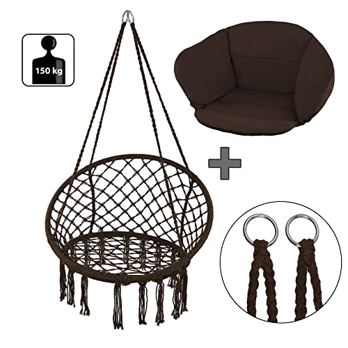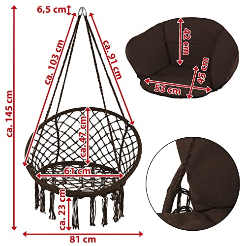 Montafox Fotel wiszący bocianie gniazdo kosz z poduszką siedzisko dla dzieci i dorosłych, Kolor: Brązowy