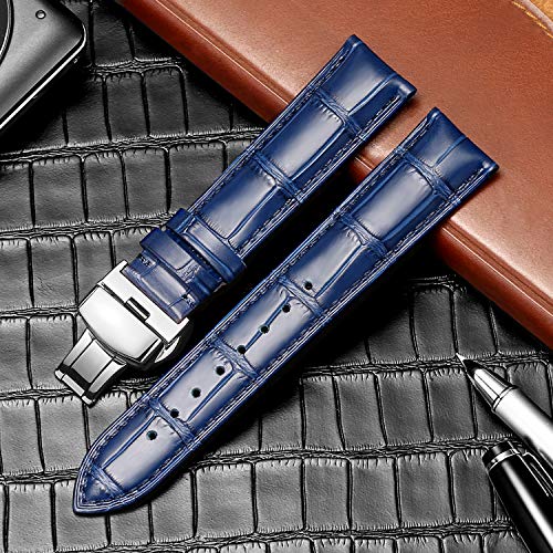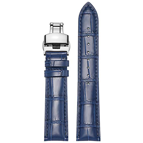 MUEN Czarny Brązowy Niebieski Rozkładana Klamra z Prawdziwej Skóry Paski do Zegarków 18mm 20mm 22mm 24mm Klasyczne Tłoczone Skórzane Paski do Zegarków