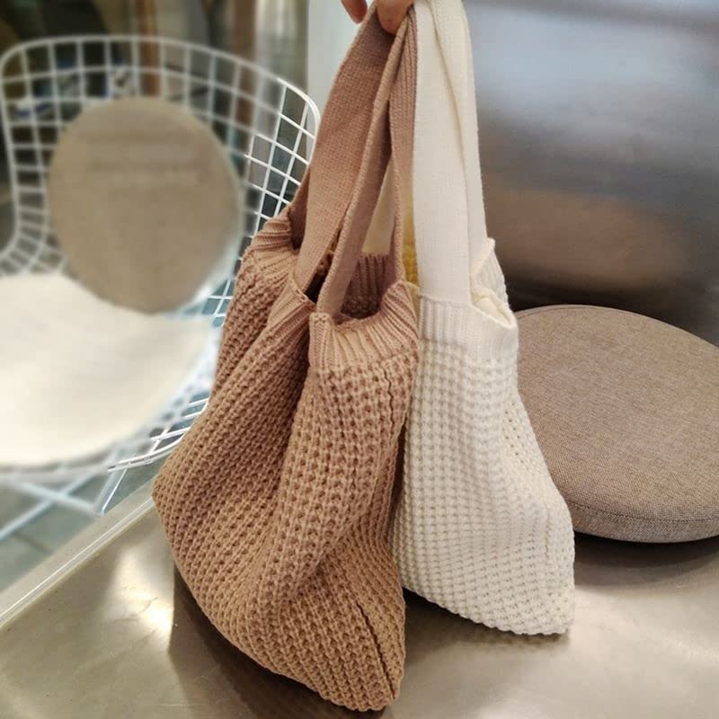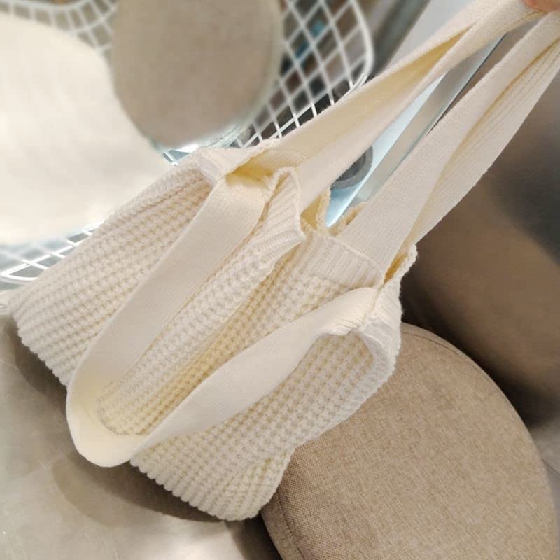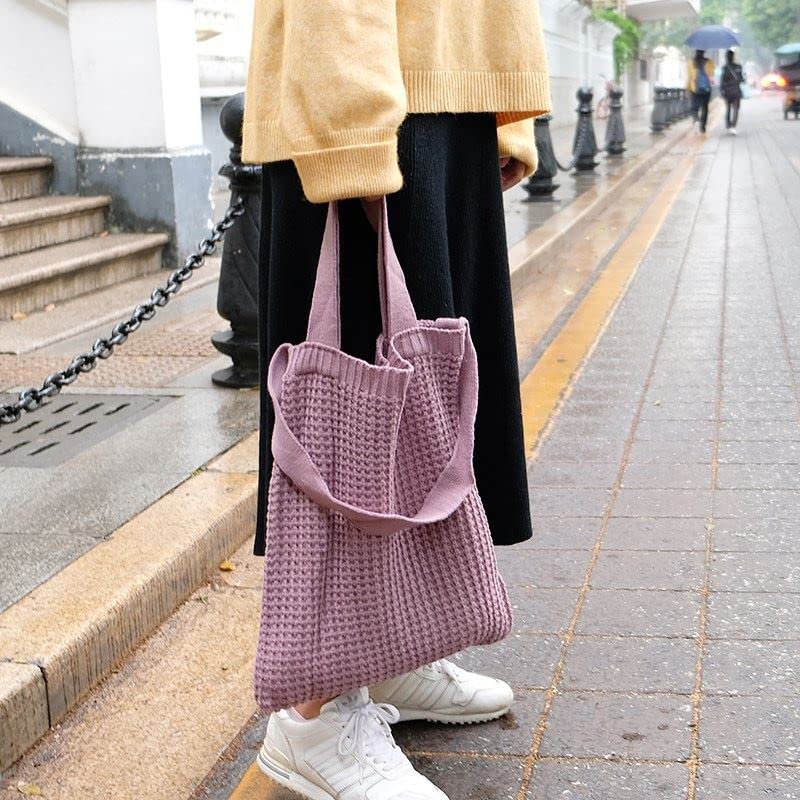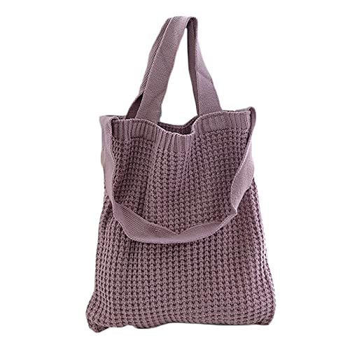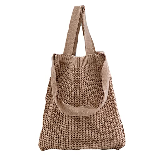 MuYuYing Damska plażowa ręcznie tkana wełniana torba na jedno ramię torba typu bucket fashion