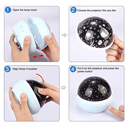 • Światło projektora dla niemowląt – Ten projektor może być używany jako prezent na Boże Narodzenie, prezent urodzinowy, prezent dla noworodka i inny specjalny prezent dla dzieci, może stworzyć swoją wyobraźnię i ciekawość. Jest to również idealne oświetlenie dekoracyjne na ślub, urodziny, imprezę, do domu, sypialni, pokoju dziecięcego.