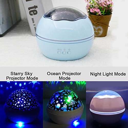 Projektor światła nocnego dla niemowląt, projektor z motywem gwiazdy, księżyca i fal oceanu, obrotowa lampa, najlepsza świąteczna lampka nocna do sypialni dziecięcej (niebieski)