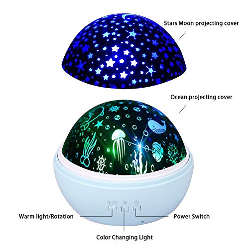 • Ciesz się lampką nocną obracającą się – życie morskie lub gwiazdy, posiada wiele ustawień kolorów i wirowania, co tworzy bardzo fajny efekt na ścianach. Światło obraca się / obraca się z powolną i kojącą prędkością. Doceniamy, że jest to ważne dla dzieci, ale również dla dorosłych, z których mogą cieszyć się dorośli.