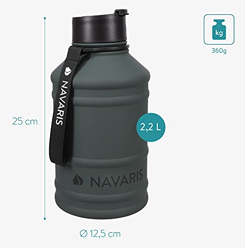 Navaris Butelka na wodę ze stali nierdzewnej – 2,2 l, duża, metalowa,