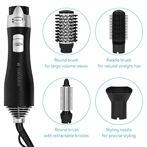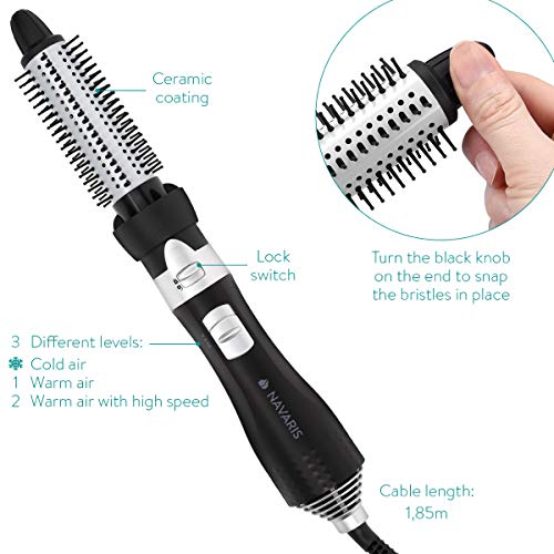 Navaris Szczotka do ciepłego powietrza z 4 końcówkami – dysza do stylizacji szczotka termiczna szczotka okrągła z wysuwanymi rzędami włosia Paddle Brush – ceramiczna szczotka do loków