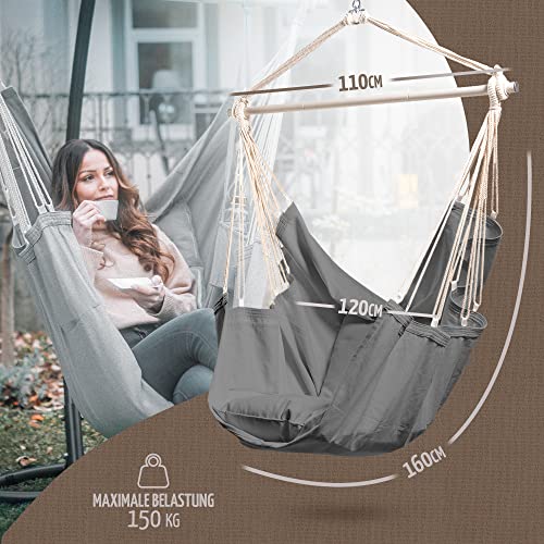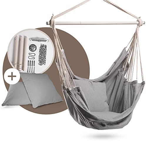 • Nasz hamak do siedzenia jest idealnym rozwiązaniem dla zachowania pysznego napoju w słońcu. Dzięki dużej przegródce na książki i praktycznemu uchwytowi na napoje masz wszystko, czego potrzebujesz. Dwie duże poduszki zapewniają, że materiał optymalnie dopasowuje się do ciała i w ten sposób szczególnie odprężysz się z obciążonymi plecami. Dzięki temu masz wspaniałe miejsce do odosobnienia.