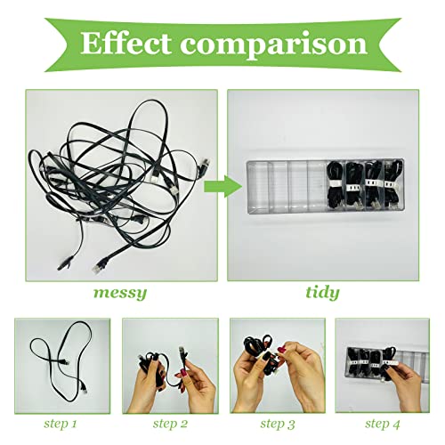 • Kolekcja kabli: akrylowy organizer jest dostarczany również z 10 opaskami kablowymi, dzięki którym można zabezpieczyć kable, ładowarki do telefonów, kabel zasilający i przewody, dzięki czemu nieuporządkowane przewody i kable na biurku nie plączą się już