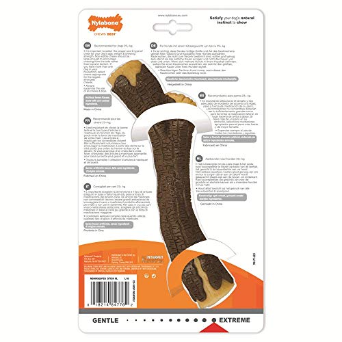 Nylabone Ekstremalnie wytrzymały pies gryzący zabawka drewniany patyk, trwały, czyści zęby, smak bekonu, XL, dla psów powyżej 23 kg