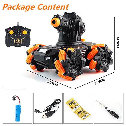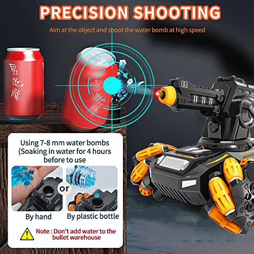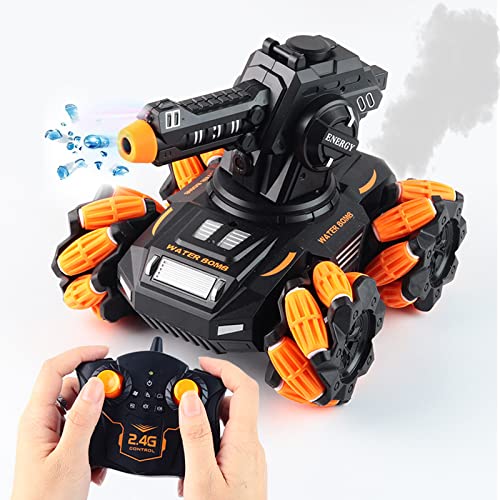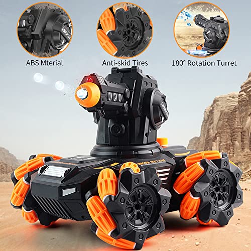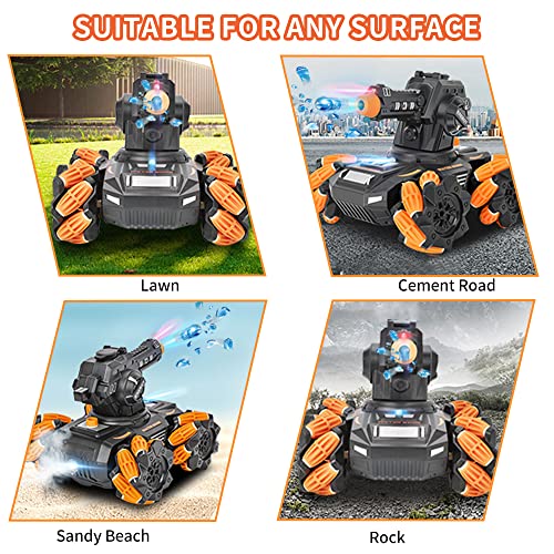 OBEST 2,4 G RC czołg zdalnie sterowany samochód zdalnie sterowany czołg bojowy do użytku na zewnątrz, samochód RC Car Auto obracany o 360°, boczny nawijanie, strzelanie bomby wodne, muzyka i LED, zabawka dla dzieci