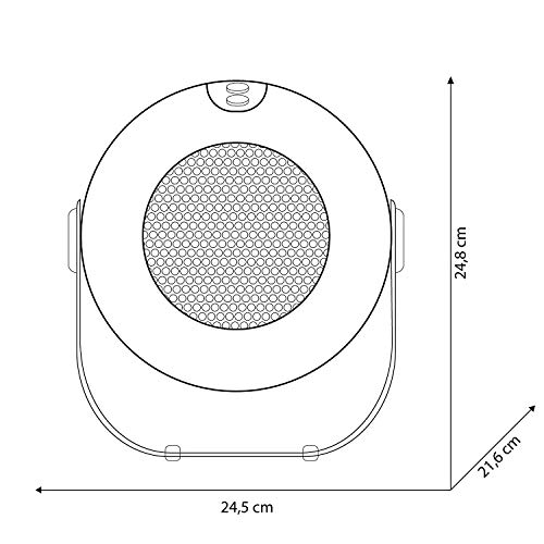 Einzelheiten: Maximale Heizleistung: 1800 W Keramik-Heizelement Raumthermostat Sicherheitsthermostat Nur-Gebläse-Betrieb Frostschutzfunktion Leistungswahl Vertikale Neigungsregelung 2 LED-Anzeigen Mechanische Regler