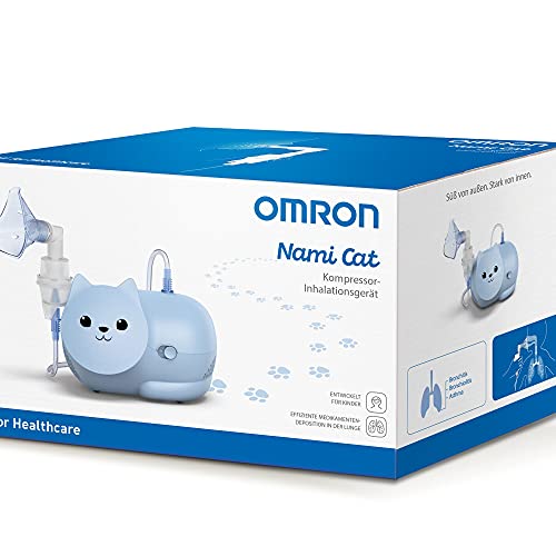 OMRON Nami Cat – przyjazny dzieciom nebulizator kompresorowy do domowego leczenia kaszlu i przeziębienia, zapalenia oskrzeli, astmy i nie tylko