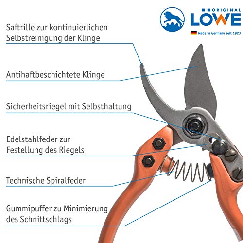 Original LÖWE 12 Bypass sekator ogrodowy 12.104 z krótką, precyzyjną głowicą tnącą – lekkie nożyce do róż dla osób praworęcznych, do średnich i dużych