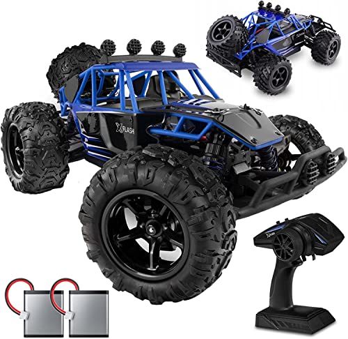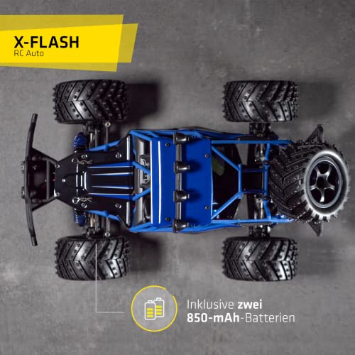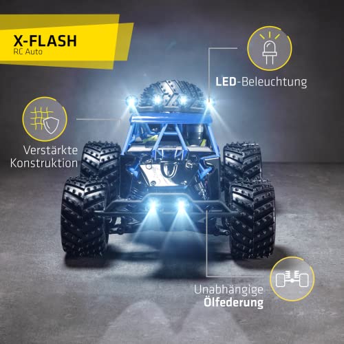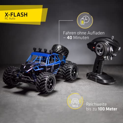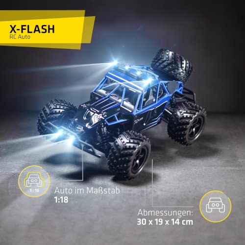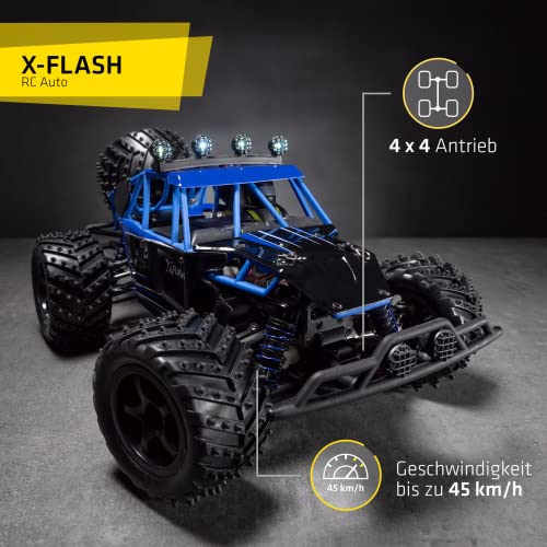 OVERMAX X-Flash zdalnie sterowany samochód RC, zasięg 100 metrów, prędkość do 45 km, napęd na wszystkie koła, amortyzator oleju, wzmocniona konstrukcja, oświetlenie, czarno-niebieski
