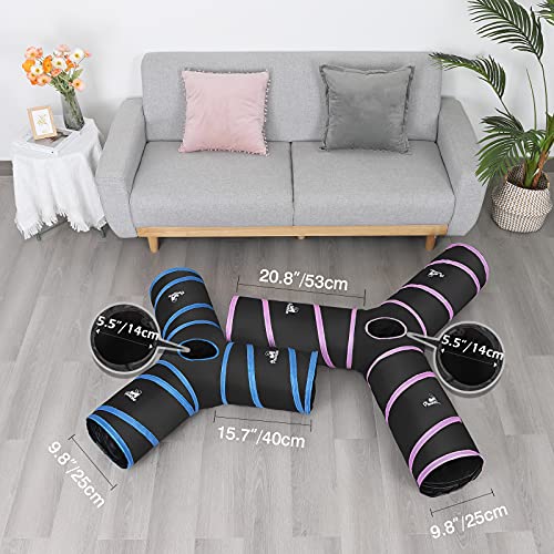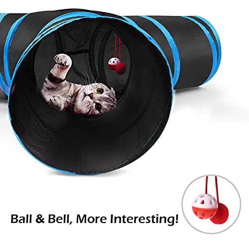 Pawaboo Tunel dla kota tunel premium, 3-drożny tunele rozkładany składany namiot do zabawy dla kota interaktywna zabawka labirynt domek dla kota z kulkami i dzwonkami dla kota szczeniaka kociaka królika, czarny i jasnoniebieski