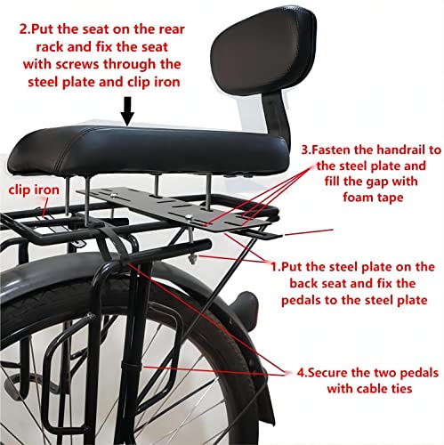• 【Łatwa instalacja】 Fotelik dziecięcy do montażu z tyłu ma prosty i wygodny montaż, z instrukcjami w języku angielskim, należy zainstalować tylko śruby w różnych częściach i jest wyposażony w klucz do szybkiego montażu, który jest łatwy w montażu.