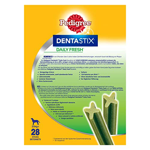 PEDIGREE DENTASTIX FRESH Kije dentystyczne dla dużych psów +25 kg – 112 patyczków (zestaw 4 pudełek po 28 smakołyków), higiena jamy ustnej, naukowo ud