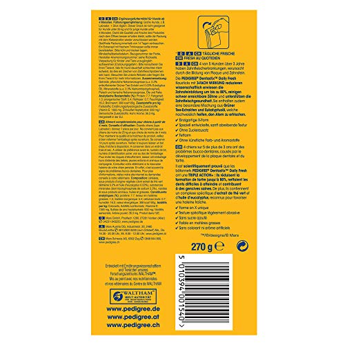 - Lieferumfang: 10 x 7 Pedigree DentaStix Fresh für große Hunde / Unterstützt die simple Zahnreinigung / Verringert nachweislich den Mundgeruch / Ergänzungsfuttermittel für Hunde ab 4 Monaten