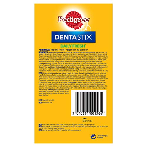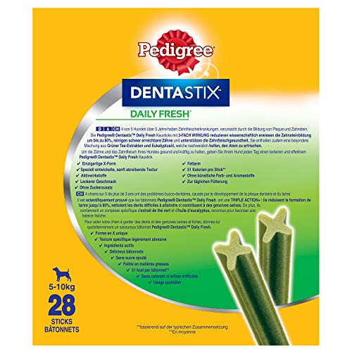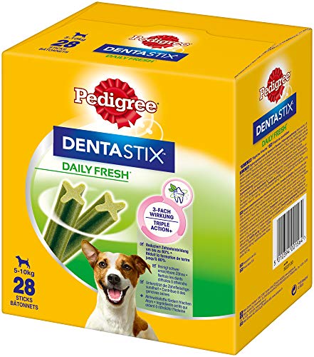 - Lieferumfang: 4 x 7 Pedigree DentaStix Fresh für kleine Hunde / Unterstützt die simple Zahnreinigung / Verringert nachweislich den Mundgeruch / Ergänzungsfuttermittel für Hunde ab 4 Monaten
